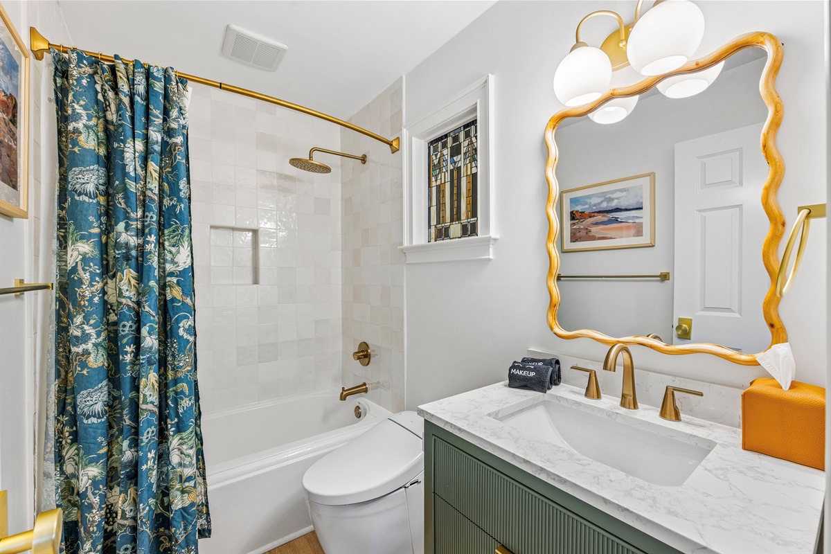 - Ensuite bathroom with tub/shower combo, single vanity, and TOTO bidet toilet