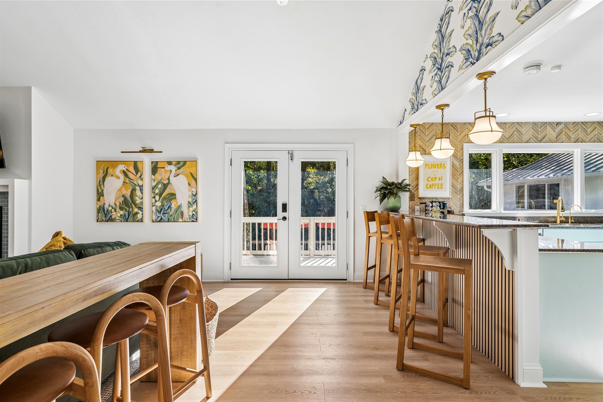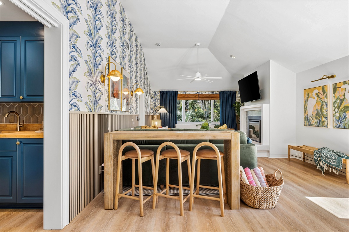 5 Bedrooms • 5 Bathrooms 5 Baths • Sleeps 11-17*Freshly Renovated Coastal Retreat* The Escapes by Dave presents The Beach Escape HHI located in North Forest Beach. Park your car and leave it behind for the rest of your trip! Our home is the 5th house from the beach, which is a two-minute easy walk away (0.1 mi) and a convenient 15-minute walk (0.7 mi) to the popular, Coligny Plaza. Our home features 5 bedrooms, 5 bathrooms (one outdoor), and comfortably sleeps 17 guests.